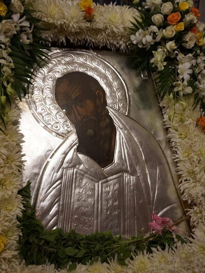 Την παραμονὴ τῆς ἑορτῆς, 25.9.2019, τελέστηκε ο Πανηγυρικὸς Ἑσπερινός, ὑπὸ τοῦ πανοσιολογιωτάτου Ἀρχιμανδρίτη π. Ἱεροθέου Ἀνδρουτσοπούλου, Ἱεροκήρυκος τῆς Ἱερᾶς Μητροπόλεως Πατρῶν, με το ναό του Αγ. Ιωάννου του Θεολόγου να έχει γεμίσει από πιστούς.