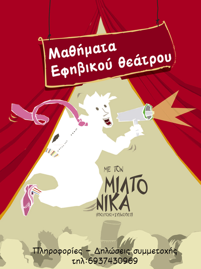Τα Μαθήματα εφηβικού θεάτρου όπως αναφέρει η σχετική ανακοίνωση, θα είναι συναντήσεις φαντασίας για την ανάπτυξη της προσωπικότητας, της δημιουργικής ατομικότητας, της έκφρασης, και του εσωτερικού κόσμου των εφήβων. Με παιχνίδια και ασκήσεις φαντασίας, μέσα από την τεχνική του αυτοσχεδιασμού, τις μουσικές και κινητικές ασκήσεις, την ορθοφωνία, τις ασκήσεις αναγνώρισης και ανάπτυξης της σκέψης και των συναισθημάτων, οι έφηβοι θα διδαχθούν τις βασικές αρχές της υποκριτικής τέχνης και θα έρθουν σε επαφή με τον υπέροχο κόσμο του Θεάτρου.