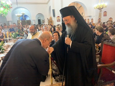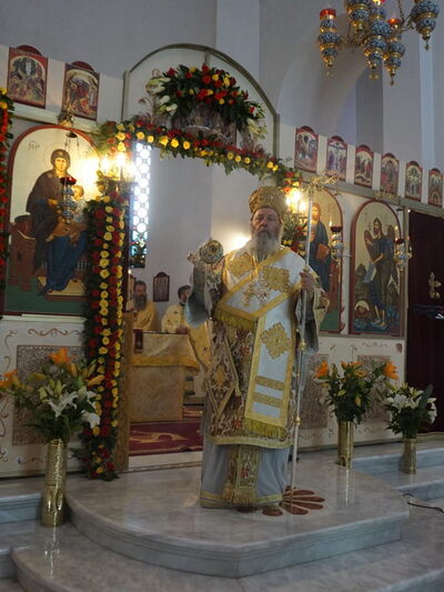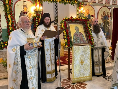 Ἀνήμερα, την Πέμπτη 3.10.2019, τελέστηκε Ἀρχιερατικὴ Θεία Λειτουργία, προεξάρχοντος τοῦ σεβασμιωτάτου Μητροπολίτου Πατρῶν κ.κ. Χρυσοστόμου καί συλλειτουργοῦντος τοῦ Θεοφιλεστάτου Ἐπισκόπου Κερνίτσης κ. Χρυσάνθου, μὲ τὴν συμμετοχὴ πλήθους πιστῶν.