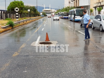 Τεράστιος κίνδυνος τραυματισμού πεζού ή οδηγού νωρίτερα στο κέντρο της Πάτρας. Φρεάτιο της ΔΕΥΑΠ ξεκόλλησε στην Όθωνος Αμαλίας, στη συμβολή με την Καρόλου κι έμεινε η τρύπα να χάσκει επικίνδυνη στο σημείο. Επί τόπου έσπευσε κλιμάκιο της Δημοτικής Επιχείρησης, πυροσβέστες κι αστυνομικοί για να αποκαταστήσουν το πρόβλημα. Στο μεταξύ, κλήσεις για κοπή δένδρων που είτε έχουν πέσει στο δρόμο είτε είναι επικίνδυνα δέχθηκε η πυροσβεστική υπηρεσία της Πάτρας για διάφορες περιοχές της πόλης όπως τα Βραχνέικα, η οδός Αυστραλίας και αλλού.