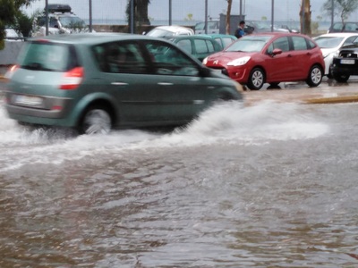 Αυτοκίνητα κινούνται σε δρόμους της Πάτρας, σαν να... επιπλέουν. Σε Ακτή Δυμαίων, Μιντιλόγλι κ.α. οι δρόμοι μετατράπηκαν σε ποτάμια και οι οδηγοί ρίσκαραν να κινηθούν μέσα σε αυτά, μη γνωρίζοντας ακόμη και το υψος του νερού από την άσφαλτο. Στην Ακτή Δυμαίων οι οδηγοί αναγκάστηκαν να κινούνται με αργές ταχύτητες για να προσπελάσουν τα "κανάλια" στα οποία είχαν μετατραπεί συνήθη ύποπτα σημεία που πλημμυρίζουν κάθε φορά που βρέχει λίγο παραπάνω.