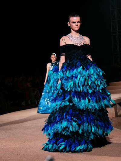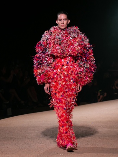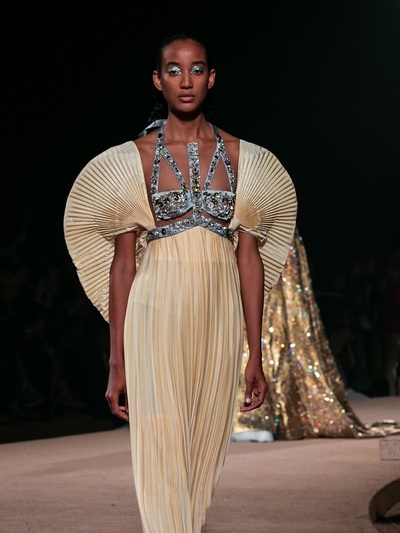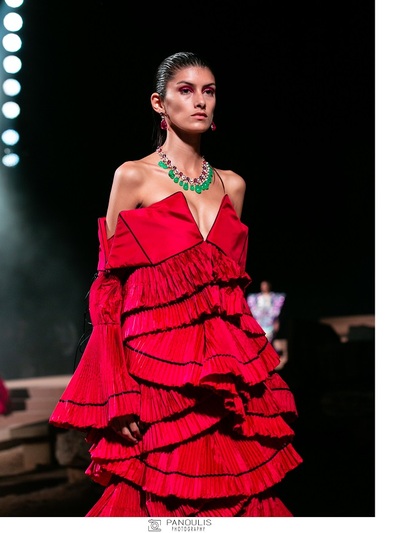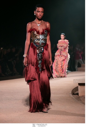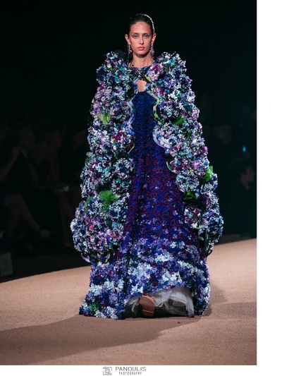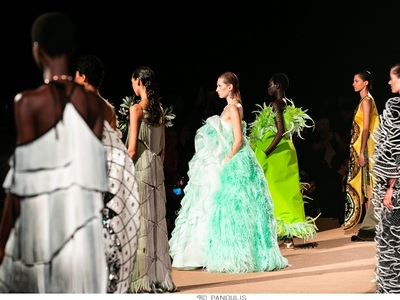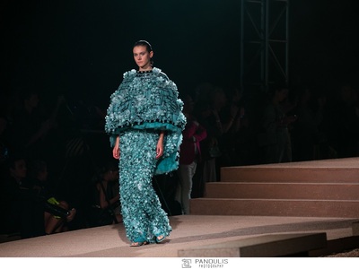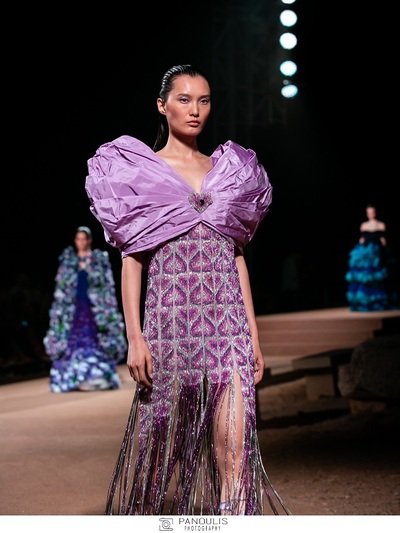 Εννοείται το show κύλησε σε μοναδική ατμόσφαιρα. Τα μαξιμαλιστικά, υπερβατικά ρούχα ήταν αφιερωμένα στην αρχαία Ελλάδα της χρυσής εποχή ςτου 5ου αιώνα π.Χ. Πλισέ σαν γλυπτά, απίστευτοι φραμπαλάδες, βολάν, φτερά και κεντήματα αλλά και διάκοσμος με χάρτες, αρχαίες γραφές, εφευρέσεις, αρχιτεκτονικά αλλά και μηχανικά και μαθηματικά μοτίβα αποθεώθηκαν. Μαριάννα Βαρδινογιάννη και Αννα Μαρία στο επίκεντρο της προσοχής επέλεξαν πιο λιτές ελληνοπρεπείς αμφιέσεις που παρέπεμπαν σε χιτώνες.