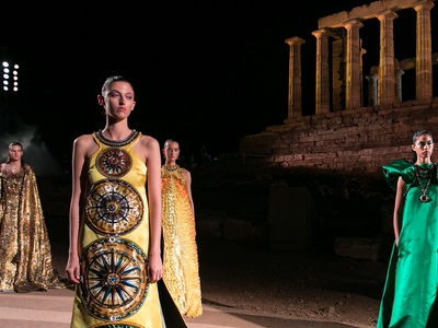 Ενας ύμνος στην Ελλάδα αλλά και ένα παγκόσμιο ανθρωπιστικό μήνυμα κατά του παιδικού καρκίνου ήταν το πολυαναμενόμενο, πρωτόφαντο και άκρως θεαματικό -για τα εγχώρια δεδομένα -show της διάσημης και πολυβραβευμένης σχεδιάστριας Mary Katrantzou στο Ναό του Ποσειδώνα στο Σούνιο, την Πέμπτη το βράδυ. Για πρώτη φορά, ο επιβλητικός αρχαιολογικός χώρος φιλοξένησε δημιουργίες μόδας, οι οποίες ήταν ολοκληρωτικά εμπνευσμένες από την αρχαιότητα και ειδικότερα τους φιλοσόφους και τους μαθηματικούς, Σωκράτη, Ευκλείδη, Πυθαγόρα. Με μουσική του πασίγνωστου μουσουργού Βαγγέλη Παπαθανασίου, κοσμήματα Bulgari, υποδήματα Ancient Greek Sandals και 500 διεθνείς προσωπικότητες στη μοναδική αυτή τοποθεσία, η designer που «σκίζει» στη βρετανική fashion σκηνή γιορτάζοντας δεκαετία, ένωσε τις δυνάμεις της με τη Μαριάννα Βαρδινογιάννη υπέρ των αναγκών της «Ελπίδας».