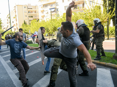 Η αστυνομία έκανε χρήση χημικών κατά των διαδηλωτών και τους απομάκρυνε ενώ σημειώθηκαν και συμπλοκές. Τα μέτρα ασφαλείας στο κέντρο της Αθήνας είναι δρακόντεια.