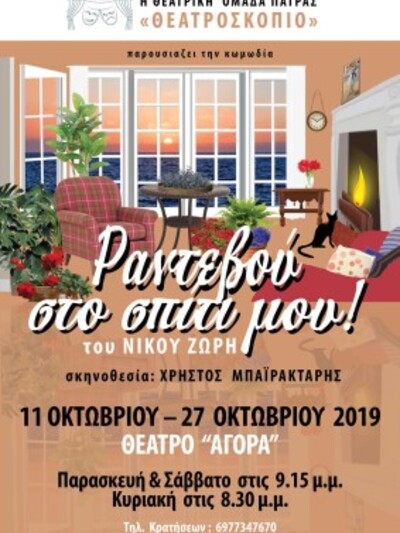 Η καινούρια ερασιτεχνική Θεατρική Ομάδα με την ονομασία «Θεατροσκόπιο» που συστάθηκε τον Μάιο του 2019 θα παρουσιάσει στη σκηνή στο θεατράκι Αγορά, στην οδό Καραισκάκη στην Πάτρα την κωμωδία του Νίκου Ζώρη «Ραντεβού στο σπίτι μου» σε σκηνοθεσία του Χρήστου Μπαϊρακτάρη. Με το έργο αυτό, η Θεατρική Ομάδα συστήνεται ουσιαστικά στο κοινό της Πάτρας.