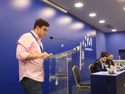 Το λόγο έλαβαν ο πρόεδρος της ΟΝΝΕΔ Παύλος Μαρινάκης, οι δύο πρώτοι εκλεγέντες στην ΚΕ της Οργάνωσης Κώστας Μαμουλής και Μένιος Κορομηλάς, ο πρώτος εκλεγείς εκπρόσωπος της Οργάνωσης στην Πολιτική Επιτροπή της Νέας Δημοκρατίας Άγις Δήγκας και ο απερχόμενος Γραμματέας ΚΕ Ανδρέας Καρασαρίνης.