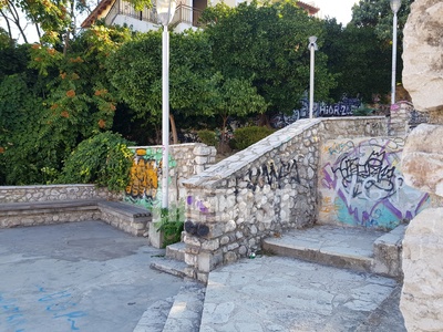 Πρόκειται για μια μικρή πλατεία σαν μπαλκόνι, την οποία ωστόσο δυστυχώς λίγοι επιλέγουν. Την ίδια στιγμή λόγω του σημείου στο οποίο βρίσκεται, τις νυχτερινές ώρες συχνάζουν και άτομα που κάνουν χρήση ναρκωτικών ουσιών, κάτι που μαρτυρούν και υπολείμματα στο χώρο. Φυσικά το φαινόμενο της χρήσης σε πλατείες είναι σύνηθες.