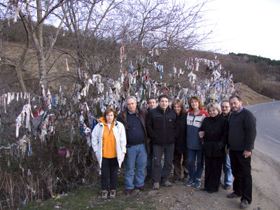 Την πρώτη φωτογραφία την έχω τραβήξει στο Svaneti, την ψηλότερη κατοικημένη περιοχή στον Καύκασο μπροστά σε ανηρτημένα ξόρκια σε δένδρο, ενώ η δεύτερη δείχνει, στο ίδιο μέρος, τον Νίκο και τον Χάρη (πρόωρα χαμένος και αυτός). Είμαστε τυχεροί που συνυπήρξαμε και με τους δύο.