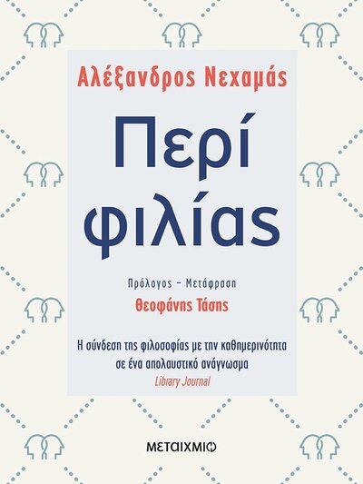 Προκειμένου να ορίσει τη σηµασία της φιλίας στη ζωή µας στο συγκεκριμένο βιβλίο, ο διακεκριµένος πανεπιστηµιακός και συγγραφέας Αλέξανδρος Νεχαµάς ανατρέχει στη φιλοσοφία και αντλεί παραδείγματα από την τέχνη, τη λογοτεχνία και τον κινηματογράφο.