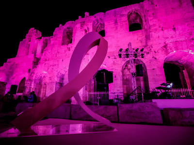 Με τη συμβολική φωταγώγηση σε ροζ χρώμα, ενός από τα πιο σημαντικά μνημεία των Αθηνών,του Ωδείου Ηρώδου του Αττικού, η παγκόσμια εκστρατεία για τον καρκίνο του μαστού γνωστής εταιρίας καλλυντικών μας υπενθυμίζει για μια ακόμη χρονιά, τη σημασία της πρόληψης και της έγκαιρης διάγνωσης.