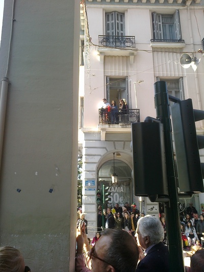 Η μητέρα και τα περισσότερα από τα αδέλφια μου, (ήμασταν οκτώ παιδιά στην οικογένεια) δεν έρχονταν μαζί μας στο καταφύγιο. Η μητέρα μου κατέβαινε στο υπόγειο του σπιτιού μας, ενώ τα μεγαλύτερα αδέλφια μου στέκονταν στο επάνω μέρος των σκαλών Γιογκαράκη, καθώς και στις σκάλες της οδού Πατρέως και από εκεί παρακολουθούσαν τα σημεία της πόλης, όπου έπεφταν οι βόμβες .