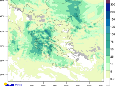 Στον χάρτη που ακολουθεί παρουσιάζεται ο ολικός υετός (βροχή/χαλάζι/χιόνι) που αναμένεται έως το βράδυ της Παρασκευής 1/11.