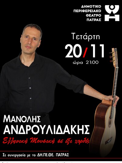 Ένας από τους σημαντικότερους δεξιοτέχνες της κλασικής κιθάρας, ο συνθέτης Μανόλης Ανδρουλιδάκης θα παρουσιάσει ένα ιδιαίτερο project με έργα Ελλήνων συνθετών, με τίτλο «Ελληνική μουσική σε έξι χορδές» στο Δημοτικό Θέατρο Απόλλων στις 20 Νοεμβρίου 2019, στις 21.00 το βράδυ.