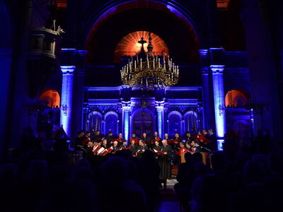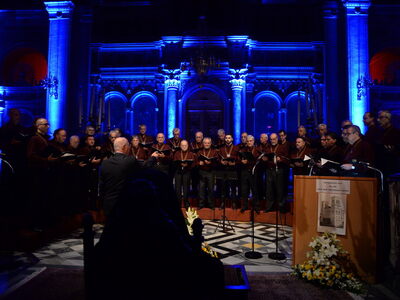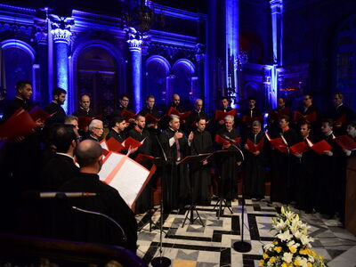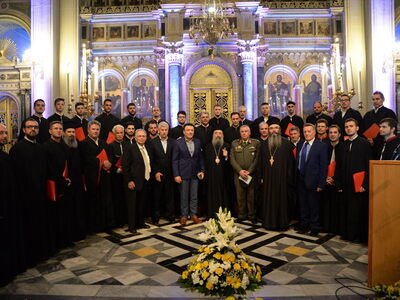 Ὓμνους ἀπέδωσαν θαυμάσια ὁ χορός ψαλτικῆς «Κλείδα» ὑπό τήν διεύθυνση τοῦ Πρωτοψάλτου τοῦ Ἱεροῦ Ναοῦ Ἁγίας Βαρβάρας Πατρῶν καί Καλλιτεχνικοῦ Διευθυντοῦ τῆς Σχολῆς Βυζαντινῆς Μουσικῆς τῆς Ἱερᾶς Μητροπόλεως Πατρῶν, κ. Δημητρίου Γαλάνη καί ἡ τετράφωνη χορωδία τοῦ Ἱεροῦ Ναοῦ Παντανάσσης, «Γεώργιος Ν. Τριάντης», ὑπό τήν διεύθυνση τοῦ κ. Θεοδώρου Χαλκιοπούλου.