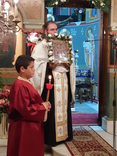 Την παραμονή της εορτής των Αρχαγγέλων Μιχαήλ & Γαβριήλ λειτούργησε στον ανακαινισμένο ναό στο Α΄Κοιμητήριο Πατρών