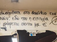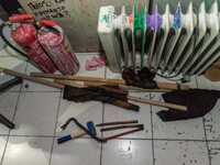 Κατά τη διάρκεια της έρευνας, σύμφωνα πάντα με την ενημέρωση της αστυνομίας, βρέθηκαν και κατασχέθηκαν, μεταξύ άλλων, κοντάρια, κράνη, γάντια, κουκούλες, ρούχα και υλικά για κάλυψη χαρακτηριστικών προσώπου, καθώς και πυροσβεστήρες, διαρρηκτικά εργαλεία, φυλλάδια αναρχικού περιεχομένου, κομμάτια από μάρμαρα και πέτρες που χρησιμοποιούνται σε επιθέσεις.