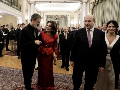Στις κομψά στολισμένες αίθουσες του Μεγάρου βρέθηκαν τα περισσότερα μέλη του υπουργικού συμβουλίου, ο πρόεδρος του ΣΥΡΙΖΑ Αλέξης Τσίπρας που μάλιστα είχε και διάλογο με την πρόεδρο του Ελλάδα 2021 Γιάννα Αγγελοπούλου.