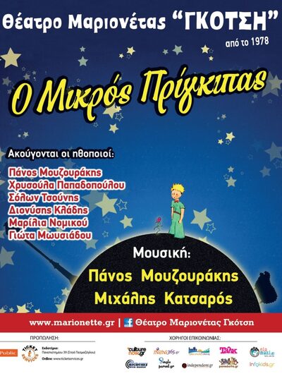 Στο Royal Theater – παλαιό Πτωχοκομείο στην Ακτή Δυμαίων θα παρουσιαστεί αυτή την Κυριακή 17 Νοεμβρίου 2019 στις 12 το μεσημέρι και στις 5 το απόγευμα, η παιδική παράσταση «Ο Μικρός Πρίγκιπας» από το Θέατρο Μαριονέτας «Γκότση» που υφίσταται από το 1978.