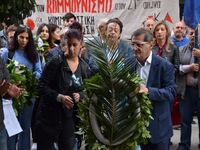 Το πρωί του Σαββάτου πραγματοποιήθηκε πορεία και κατάθεση στεφάνων στο κέντρο της Πάτρας από μέλη του ΠΑΜΕ.
