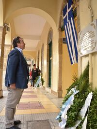 Στη συνέχεια στο χώρο της παλιάς Ασφάλειας, ο Πρόεδρος του Δημοτικού Συμβουλίου Παναγιώτης Μελάς, κατέθεσε στεφάνι, τιμώντας τους αγωνιστές που βασανίστηκαν κατά τη διάρκεια της χούντας.