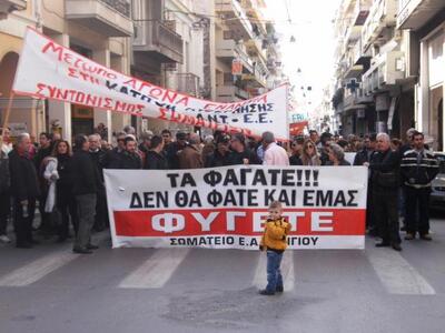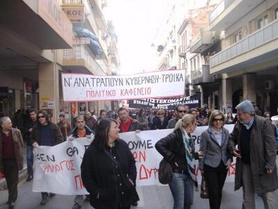 Νέκρωσε χθες η Πάτρα εξαιτίας της γενικής απεργίας των εργαζομένων δημόσιου και ιδιωτικού τομέα. Οι εργαζόμενοι, οι άνεργοι, οι έμποροι, οι αυτοαπασχολούμενοι, οι αγρότες, βγήκαν στους δρόμους της αχαϊκής πρωτεύουσας, διατρανώνοντας την αντίθεσή τους στην κυβερνητική πολιτική, στην τρόϊκα και στο Μνημόνιο.