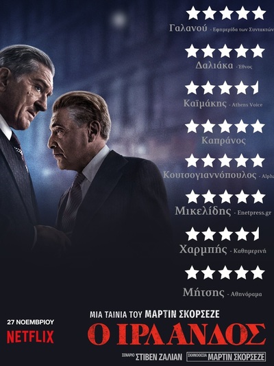Εξαιρετική ήταν και στη χώρα μας η υποδοχή από τους κινηματογραφικούς κριτικούς της νέας ταινίας του Μάρτιν Σκορσέζε «Ο Ιρλανδός» που προβάλλεται από την περασμένη Πέμπτη 21 Νοεμβρίου 2019 και στην Πάτρα στα Odeon Veso Mare χωρίς διάλειμμα παρά την μεγάλη διάρκεια (209 λεπτά). Η αλήθεια είναι πως απ’ ένα σημείο και μετά η ταινία παρακολουθείται σχεδόν απνευστί, ειδικά όλο το τελευταίο κομμάτι που οδηγεί και σε μία μεγάλη «ανατροπή», γεγονός που φανερώνει την μαεστρία του 76χρονου Σκορσέζε, ενός σπουδαίου Αμερικανού με Ιταλικές ρίζες, σκηνοθέτη που αφηγείται μία ιστορία που τα έχει όλα στο κάδρο, γκάνγκστερ, υπόκοσμο, την ιστορία της Αμερικής τις κρίσιμες δεκαετίες του ‘60 και ’70 με γεγονότα όπως ο Κόλπος των Χοίρων, η δολοφονία του Προέδρου Τζον Κένεντι το 1963, το σκάνδαλο Γουότεργκειτ που οδήγησε στην παραίτηση του Προέδρου Νίξον, κ.α.