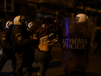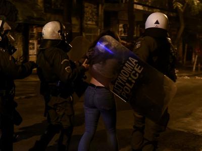 Αίσθηση προκαλεί το βίντεο και οι φωτογραφίες από την προσαγωγή μιας νεαρής κοπέλας στα Εξάρχεια. Η κάμερα καταγράφει τη στιγμή που η κοπέλα τρέχει ενώ δέχεται ένα βίαιο σπρώξιμο από άνδρα των ΜΑΤ που κυριολεκτικά έχει ορμήσει πάνω της. Η κοπέλα πέφτει κάτω και την περικυκλώνουν και άλλοι αστυνομικοί. Οι άνδρες των ΜΑΤ τη σηκώνουν και ενώ κάποιος πλησιάζει (με το κόκκινο μπουφάν) για να δει αν χτύπησε και αν είναι καλά, τον απομακρύνουν. Στη συνέχεια οι αστυνομικοί σέρνουν την κοπέλα μακριά η οποία ακούγεται να φωνάζει «δεν έκανα τίποτα», αναφέρει το lifo.gr
