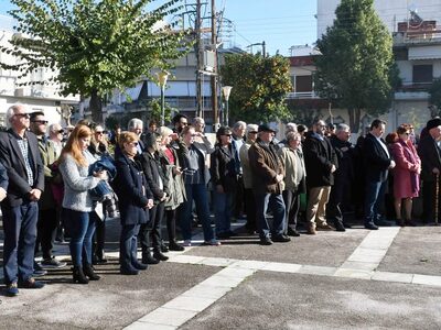 Εκεί έγινε κατάθεση στεφάνων και ομιλία από τον Πρόεδρο του Δημοτικού Συμβουλίου, Παναγιώτη Μελά, ως ελάχιστος φόρος τιμής στους ηρωικούς νεκρούς του λαού της πόλης.