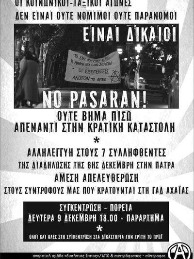 Οι κοινωνικοί ταξικοί αγώνες δεν είναι ούτε νόμιμοι ούτε παράνομοι. Είναι δίκαιοι. Ούτε βήμα πίσω απέναντι στην κρατική καταστολή.