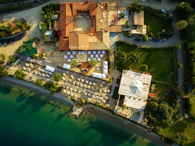 Η χαρακτηριστική έπαυλη στο Κτήμα Παναγιωτόπουλου περιστοιχίζεται από 20 προνομιακά παραλιακά στρέμματα, όπου κάθε χρόνο οι νεόνυμφοι απολαμβάνουν τις ωραιότερες στιγμές της ζωής τους.