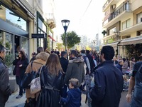 Γεμάτος κόσμο είναι ο πεζόδρομος της Ρήγα Φεραίου. Τα ανοιχτά καταστήματα και ο καλός καιρός ήταν για τους πατρινούς ευκαιρία να κάνουν τη βόλτα τους στο κέντρο.