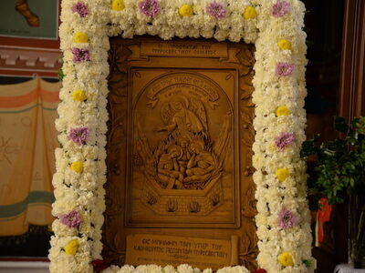 Την παραμονὴ, 16.12.2019, το απόγευμα, τελέστηκε ο πανηγυρικός εσπερινός χοροστατούντος του Θεοφιλεστάτου Ἐπισκόπου Κερνίτσης κ. Χρυσάνθου, ὁ ὁποίος και μίλησε για τον Άγιο Διονύσιο.