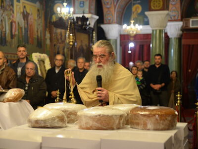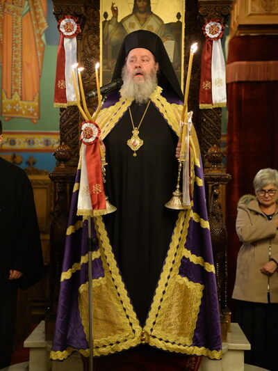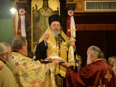 Ο σεβασμιότατος στο κήρυγμά του ἀναφέρθηκε στούς Προφήτες τῆς Παλαιᾶς Διαθήκης καί στούς Ἁγίους τῆς Καινῆς Διαθήκης, τονίζοντας ὃτι οὐδέποτε ἐξέλιπε τό προφητικό ἀξίωμα ἀπό τήν Ἐκκλησία, ἀφοῦ ὃλοι οἱ Ἃγιοι γίνονται: α) δέκτες τῆς χάριτος τοῦ Θεοῦ β) φύλακες αὐτῆς τῆς χάριτος καί γ) μεταδίδουν αὐτή τήν χάρη στούς ἂλλους, στά πνευματικά τους παιδιά. Ὃλοι οἱ Ἃγιοι τῆς Ἐκκλησίας, Παλαιᾶς καί Καινῆς Διαθήκης, ἀπό τῆς ἀρχῆς καί μέχρι τῶν ἐσχάτων, εἶναι οἱ πνευματικές αὐθεντίες, οἱ ἀλάνθαστοι, οἱ ἀπλανεῖς ὁδηγοί πρός τήν σωτηρίαν, διά τῆς ὁδοῦ τῆς μετανοίας καί τῆς μετοχῆς στό Κυριακό Σῶμα καί Αἷμα, εἰς ζωήν αἰώνιον.