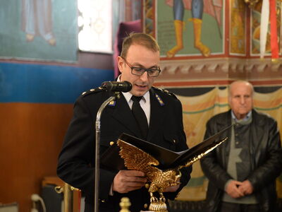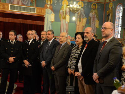 Στὴν Δοξολογία χοροστάτησε ὁ σεβασμιώτατος Μητροπολίτης Πατρῶν κ.κ. Χρυσόστομος, ὁ ὁποῖος ἀπηύθυνε ἐγκάρδιες εὐχαριστίες πρὸς τὴν Κεντρικὴ καὶ Τοπικὴ Ἡγεσία τοῦ Πυροσβεστικοῦ Σώματος, πρὸς τοὺς Ἀξιωματικοὺς καὶ Ὑπαξιωματικοὺς Πυροσβέστες καὶ Πυροσβέστριες καί τοὺς Ἐθελοντὰς τοῦ Σώματος γιὰ τὴν μεγάλη καὶ θυσιαστικὴ τοὺς προσφορὰ στὴν κοινωνία.