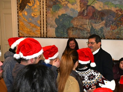 Τα παιδιά του ΚΔΑΠ ΜΕΑ ΚΟΜΑΙΘΩ, άνοιξαν σήμερα το πρωί στο Δημαρχείο, τον "χορό" των μουσικών ευχών για τις γιορτές και έψαλαν τα Χριστουγεννιάτικα κάλαντα στον Δήμαρχο Πατρέων, Κώστα Πελετίδη και τον Πρόεδρο του ΚΟΔΗΠ, Θόδωρο Τουλγαρίδη.
