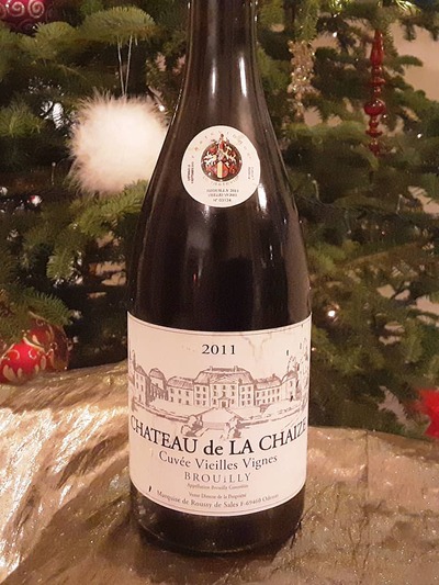 Στο χωριό ODENAS βρίσκεται το μεγαλύτερο Château της περιοχής Μποζολέ το CHÂTEAU de LA CHAIZE το οποίο κτίστηκε το 1670. Εδώ η ποικιλία σταφυλιού είναι το Gamay, από το οποίο παράγεται το διάσημο Beaujolais Nouveau, αλλά αντίθετα από αυτό που το απολαμβάνουμε φρέσκο, το CHÂTEAU de LA CHAIZE χρειάζεται 5-10 χρόνια για να αναπτύξει τα αρώματα του και να ενηλικιωθεί για να το απολαύουμε. Από τα πιο παλιά αμπέλια του κτήματος με χρώμα βαθύ ρουμπινί, αρώματα από κόκκινα φρούτα του δάσους αλλά και δαμάσκηνα ανεβάζει εκεί που πρέπει την φήμη της περιοχής. Ταιριάζει με την γαλοπούλα μας αλλά και με φτερωτά κυνήγια, δροσισμένο λίγο στους 16°C.