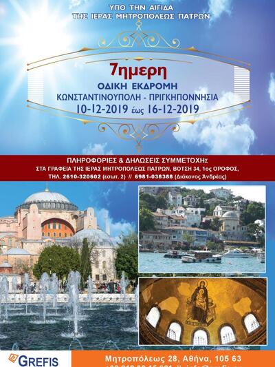 Δεν πραγματοποιήθηκε τελικά, όπως πληροφορήθηκε το thebest.gr, η 7ήμερη οδική εκδρομή που είχε προαναγγείλει η Ιερά Μητρόπολη Πατρών στην Κωνσταντινούπολη και Πριγκηποννήσια για το χρονικό διάστημα από 10 έως 16 Δεκεμβρίου 2019.