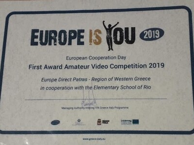Σε ένα βίντεο διάρκειας 40’’ τα παιδιά απάντησαν στο ερώτημα «Why Europe is You”, μίλησαν για τα πλεονεκτήματα του να είσαι μέλος της Ευρωπαϊκής Ένωσης και απέσπασαν το πρώτο βραβείο!