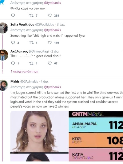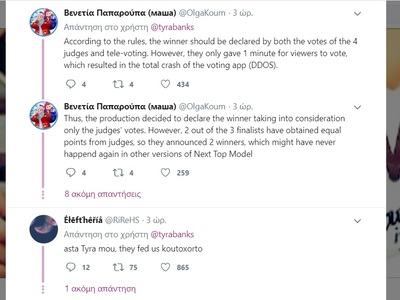 Γράφει χαρακτηριστικά: «Ακούω πολλά για το Greece's Next Top Model. Μπορεί κάποιος (φαν ή παραγωγοί) να μοιραστούν τι συνέβη; Δεν ελέγχω τις διεθνείς εκδόσεις του Top Model, αλλά εξακολουθώ να νοιάζομαι».
