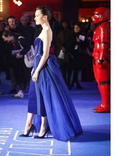 H 27χρονη λονδρέζα Ντέιζι Ρίντλει είναι αναμφίβολα η super star των ημερών, καθώς ενσαρκώνει τη Rey, την ηρωίδα της νέας, πολυαναμενόμενης περιπέτειας φαντασίας Star Wars με ειδικό τίτλο «The rise of Skywalker». Στην πρεμιέρα της ταινίας, στη Leicester Square του Λονδίνου, η τουαλέτα Vivienne Westwood Couture που φόρεσε η νεαρή ηθοποιός θεωρήθηκε "ακαταμάχητη", "ερωτεύσιμη" και "τεατράλε" από τα διεθνή media. Πρόκειται σίγουρα για μια αντιπροσωπευτική, εμβληματική δημιουργία υψηλής ραπτικής σε έντονο μπλε, με βικτωριανά στοιχεία. Εφαρμοστό στράπλες μπούστο από βελούδο, στενή φούστα και θεαματική "ουρά" συνδυάστηκαν με υπέρκομψα γοβάκια Jimmy Choo και διαμαντένια σκουλαρίκια σαν κομήτες αστεριών, τρελαίνοντας τους fashion experts. Σχολιάστηκε μάλιστα πως αυτή ήταν μια από τις ωραιότερες red carpet εμφανίσεις όλου του 2019.