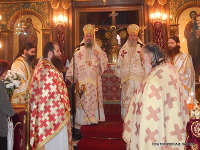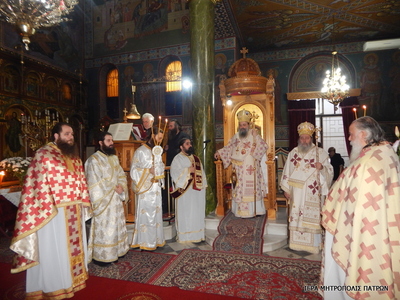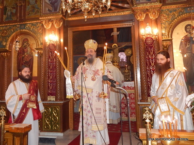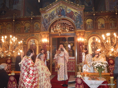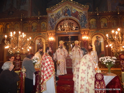 Τῆς Θείας Λειτουργίας προέστη ὁ σεβασμιότατος Μητροπολίτης Πατρῶν κ.κ. Χρυσόστομος, συλλειτουργοῦντος τοῦ υἱοῦ της, Θεοφιλεστάτου Ἐπισκόπου Κερνίτσης κ. Χρυσάνθου, μέ τήν συμμετοχή καί ἂλλων Κληρικῶν.