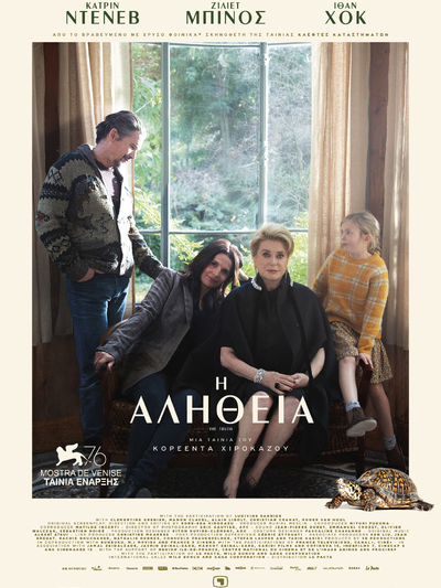 Η ταινία με τίτλο «Η Αλήθεια – The Truth» του Ιάπωνα Κορεέντα Χιροκάζου με ένα πολύ ωραίο καστ που περιλαμβάνει την Κατρίν Ντενέβ, την Ζυλιέτ Μπινός και τον 48χρονο Αμερικανό σταρ Ίθαν Χοκ, θα βγει 9 Ιανουαρίου 2020 στην Ελλάδα σε διανομή της Seven Films και αναμένεται να την δούμε και εδώ στην Πάτρα.