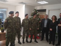 Οπλίτες από το ΚΕΤχ με επικεφαλής τη μόνιμη λοχία Ελένη Χαντζάρα είπαν τα κάλαντα κι αντάλλαξαν ευχές με τον Περιφερειάρχη.