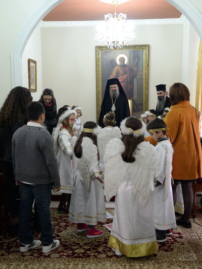 Για μία ακόμη χρονιά το Επισκοπείο των Πατρών πλημμύρισε από τις χαρούμενες φωνές των παιδιών, την παραμονή των Χριστουγέννων, την Τρίτη 24.12.2019. Παιδιά κατά ομάδες αλλά και μέλη συλλόγων τραγούδησαν τα παραδοσιακά Κάλαντα & μετέφεραν μέ τόν δικό τους τρόπο τό μήνυμα τῆς μεγάλης Δεσποτικῆς ἑορτῆς τῶν Χριστουγέννων.