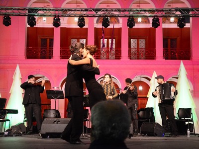 Η πλατεία Γεωργίου πλημμύρησε από κόσμο, ο οποίος απόλαυσε από τις 8:30 το βράδυ ένα Xριστουγεννιάτικο μουσικό ταξίδι, από την Κωνσταντινούπολη έως το Παρίσι. Ένα ταξίδι από την ανατολή ως τη δύση, μέσα από το μουσικό πρόγραμμα με τίτλο «Orient Express».