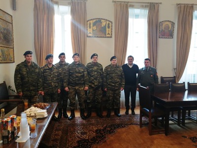 Παραμονή Πρωτοχρονιάς σήμερα και στον Δήμαρχο Πατρέων, Κώστα Πελετίδη, έψαλαν τα κάλαντα, στρατιώτες του ΚΕΤχ, αλλά και τα μέλη του Παγκαλαβρυτινού Συλλόγου.