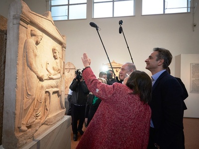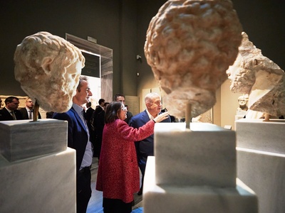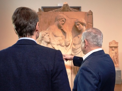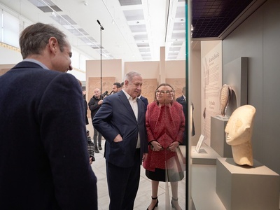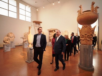 Μερικούς από τους πολυτιμότερους θησαυρούς του αρχαίου ελληνικού πολιτισμού είχαν την ευκαιρία να θαυμάσουν ο πρωθυπουργός Κυριάκος Μητσοτάκης και ο ομόλογός του από το Ισραήλ, Μπενιαμίν Νετανιάχου, οι οποίοι ξεναγήθηκαν στο Εθνικό Αρχαιολογικό Μουσείο από την διευθύντρια Μαρία Λαγογιάννη, συνοδεία της υπουργού Πολιτισμού και Αθλητισμού Λίνας Μενδώνη.