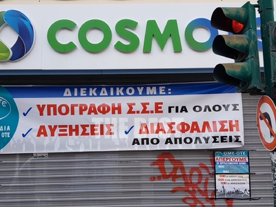 Και σήμερα εργαζομένων στον ΟΤΕ και την COSMOTE, ήταν έξω από το υποκατάστημα της Αγ. Ανδρέου και Ερμού. Κατεβασμένα είναι τα ρολά στα καταστήματα του ΟΤΕ στην Πάτρα, στο πλαίσιο της απεργίας διαρκείας που προκήρυξε η Ομοσπονδία εργαζομένων και η οποία ξεκίνησε στις 21 Δεκεμβρίου.