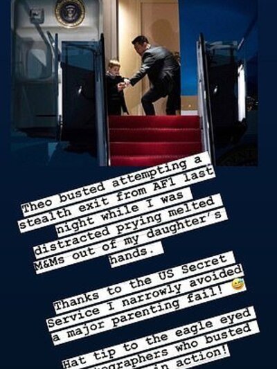 Κατά την αποβίβαση, ο μικρός γιος της Ιβάνκα, Θίοντορ, προσπάθησε να κατέβει τη σκάλα χωρίς την εποπτεία κάποιου από τους γονείς του ή κάποιου άλλου ενήλικα, με αποτέλεσμα ένας από τους πράκτορες της οικογένειας να τον σταματήσει. Τότε, ο φακός «συνέλαβε» τον μικρό να προσπαθεί να δαγκώσει τον πράκτορα που τον «τσάκωσε» στα πράσα.