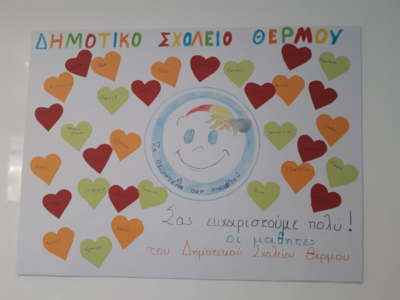 Ο Δήμος Θέρμου θέλει να ευχαριστήσει δημοσίως όλους όσους συμμετείχαν στη δράση και ιδιαίτερα το «Χαμόγελο του Παιδιού» και το προσωπικό του που με το κινητό πολυϊατρείο εξέτασε 138 παιδιά/μαθητές, τον παιδίατρο κύριο Αθανάσιο Ρώσσα που εθελοντικά συμμετείχε στην δράση καθώς επίσης και τον Διευθυντή του Δημοτικού Σχολείου κύριο Χριστόπουλο Γεώργιο.